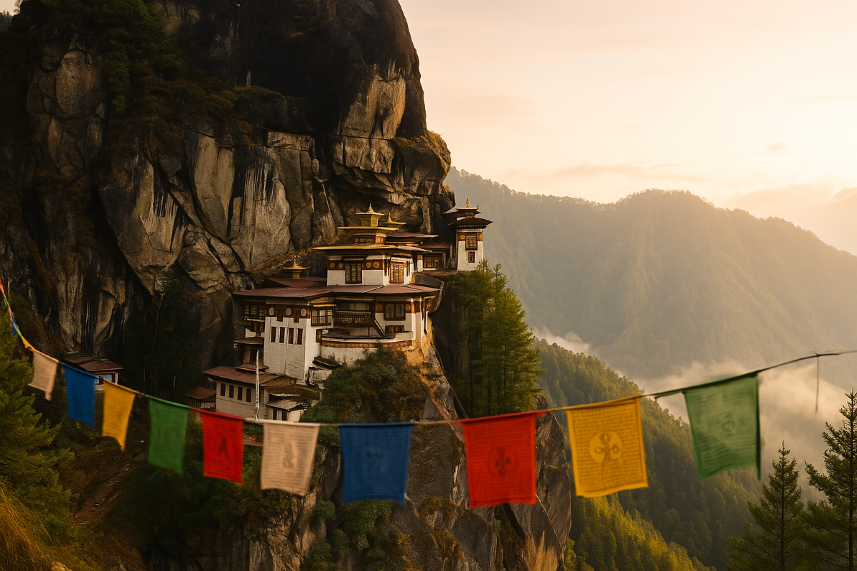 El famoso Monasterio del Nido del Tigre, es uno de los templos más venerados del país y uno de los más bonitos de Asia. Se encuentra ubicado sobre una cornisa de la montaña, a 1.000 metros de altura, en el valle sagrado de Paro. Según la leyenda, Guru Rinpoché(el Segundo Buda) voló hasta él a lomos de una tigresa para someter a un demonio local y se quedó meditando durante tres meses.