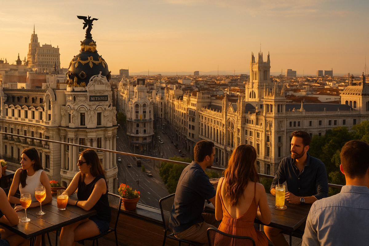 Situada en la octava planta del Hotel NH Collection de Gran Vía, con unas vistas de la Gran Vía madrileña únicas. Cuenta con un restaurante de alta calidad con buenos precios que os permitiran disfrutar de un atardecer de ensueño.